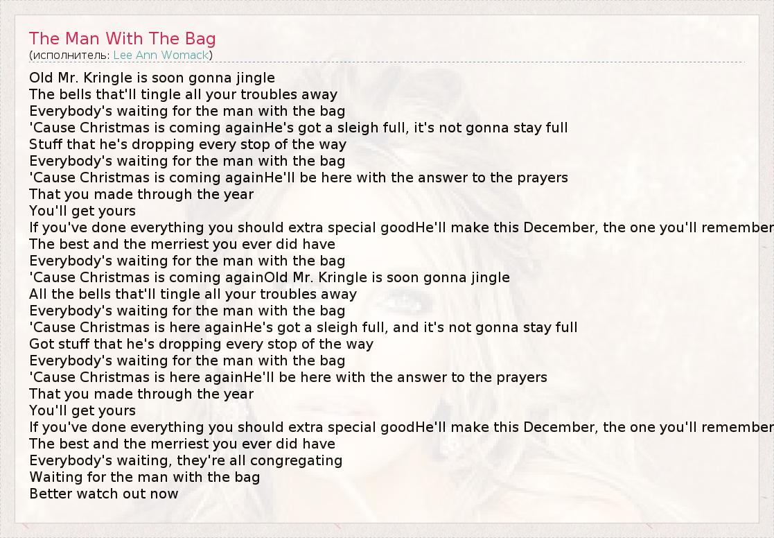 А как ты думаешь, о чем песня "The Man With The Bag" ?