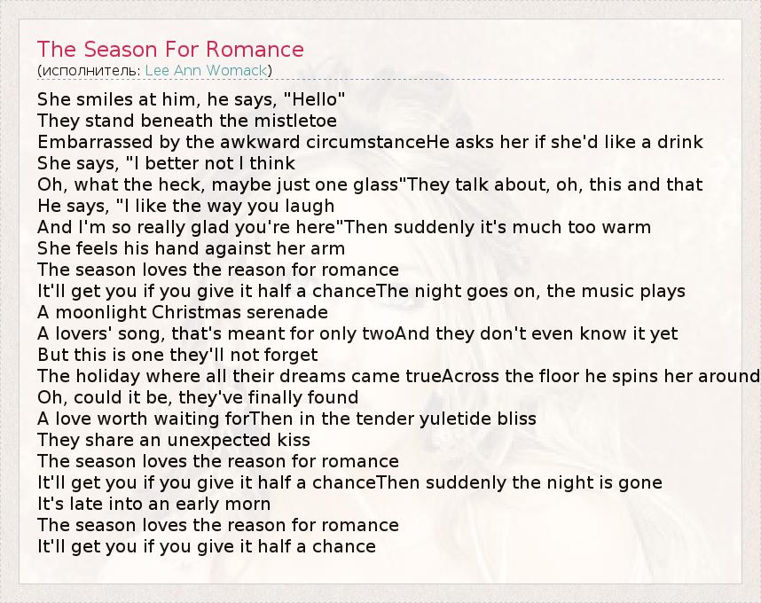 А как ты думаешь, о чем песня "The Season For Romance" ?