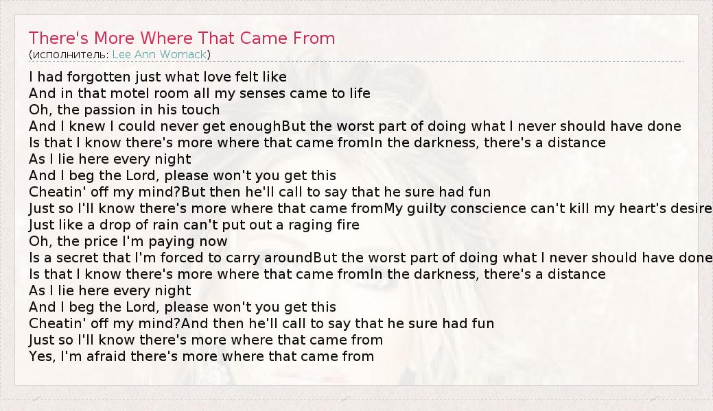 ГлавнаяИсполнителиLee Ann WomackThere's More Where That Came From