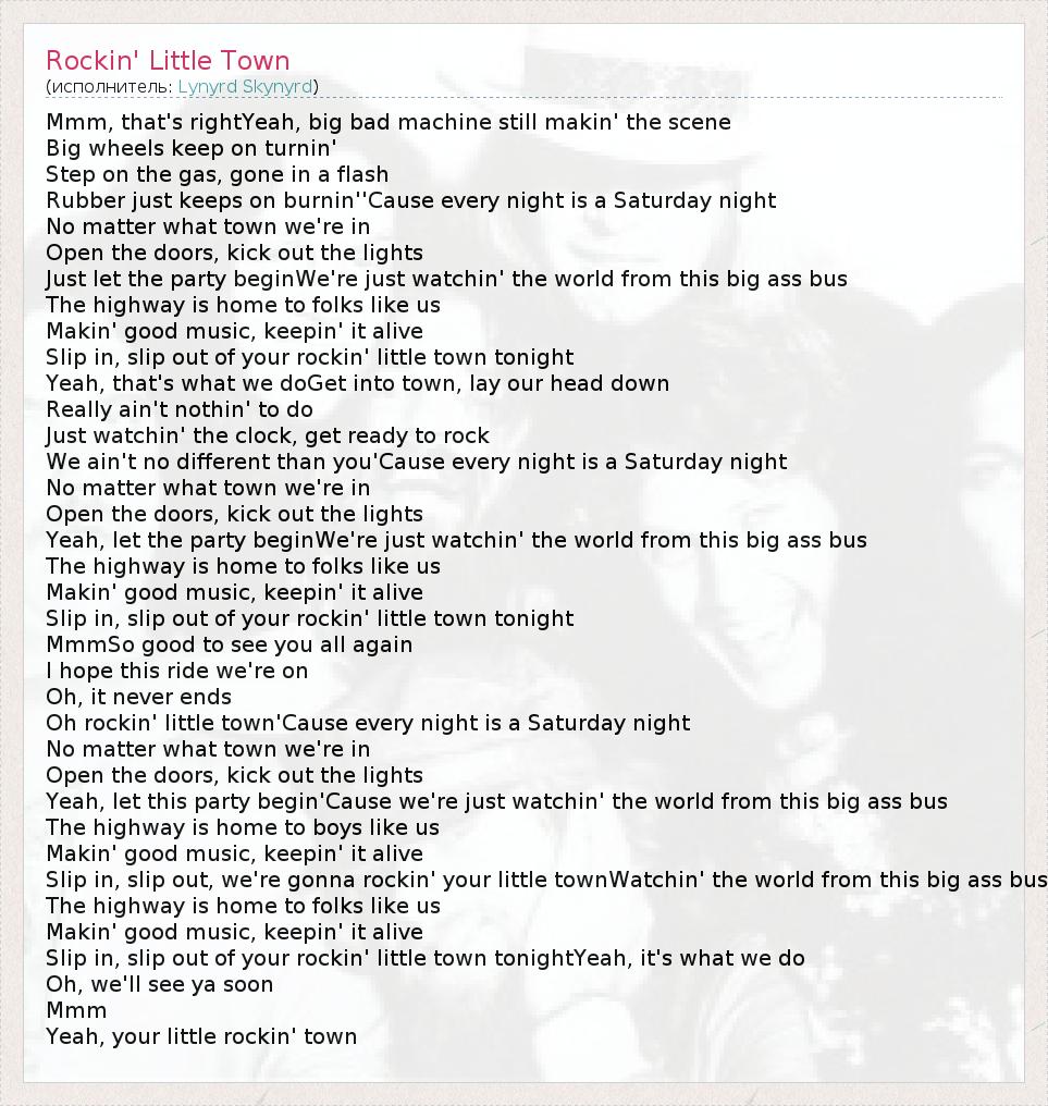 А как ты думаешь, о чем песня "Rockin' Little Town" ?