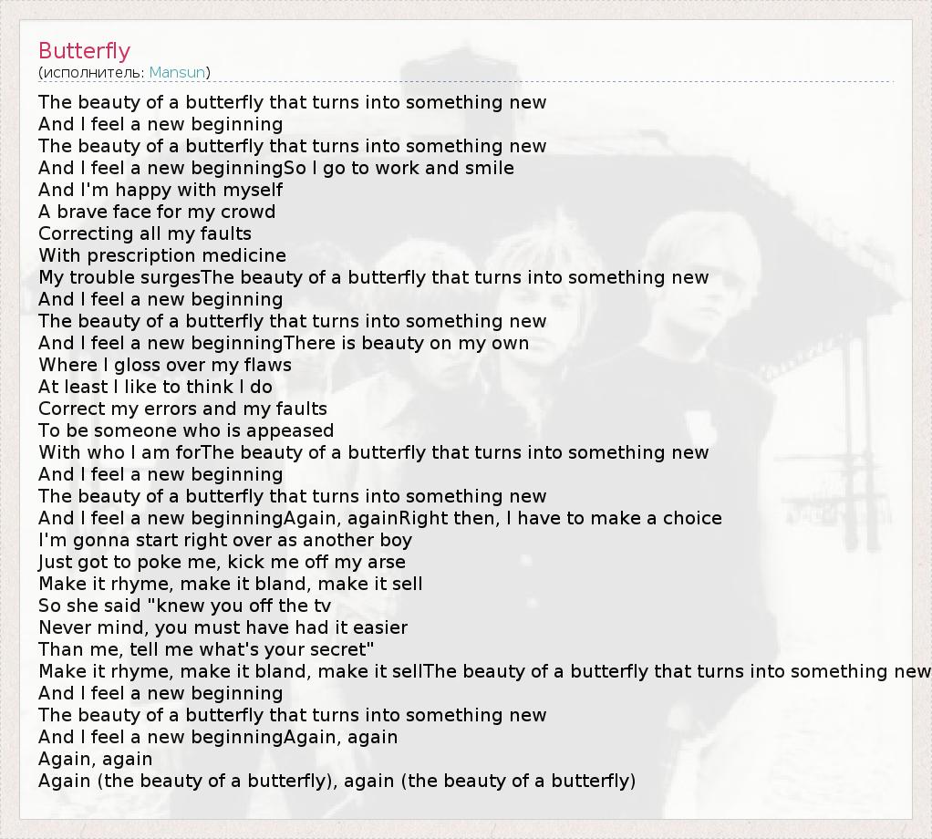 Again (the beauty of a butterfly), again (the beauty of a butterfly)