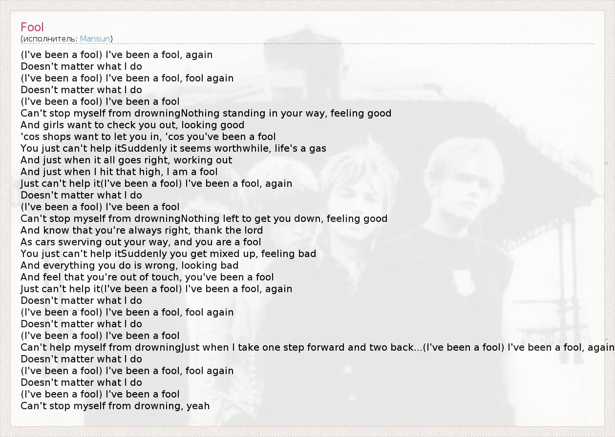 А как ты думаешь, о чем песня "Fool" ?
