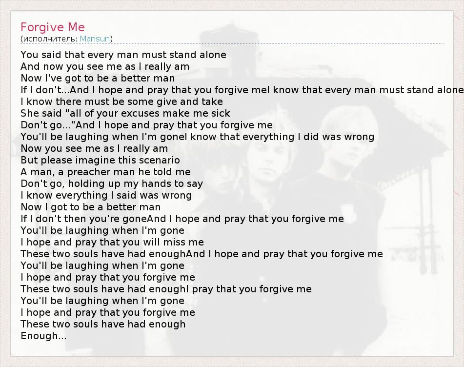 If I don't...And I hope and pray that you forgive meI know that every man must stand alone