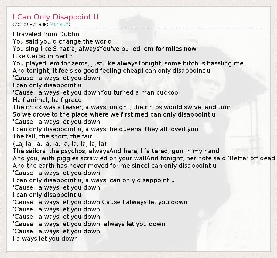 I can only disappoint u, alwaysI can only disappoint u