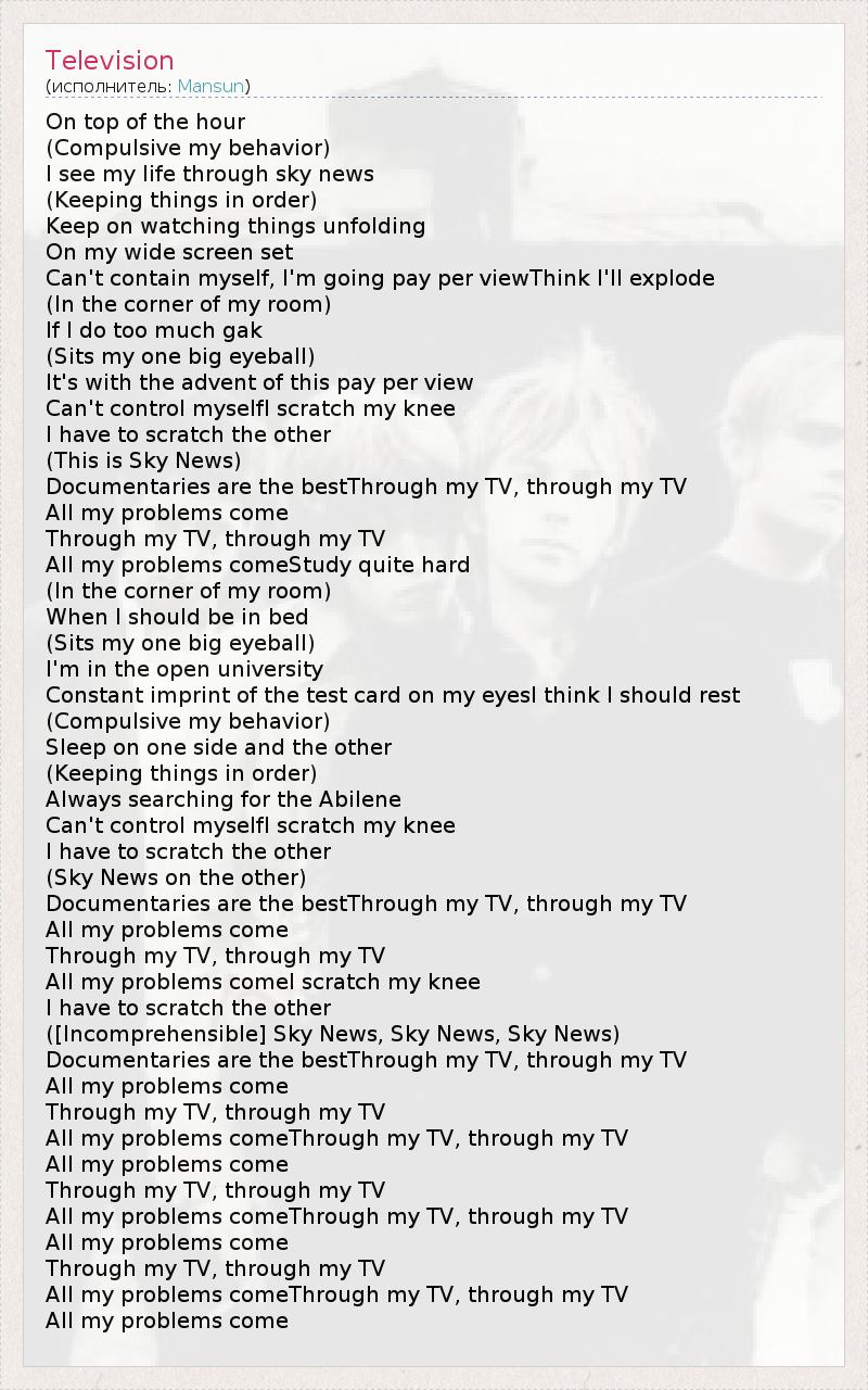 Это интересно:МЭНСАН (Mansun), английская брит-поп-группа. Основана в 1995 в г. Честер (недалеко от Ливерпуля).Основатели группы Пол Дрэпер (Paul Draper, вокал, гитара) и Стоув Кинг (Stove King, бас) познакомились в Ливерпульском художественном колледже. Оба любили DURAN DURAN, Дэвида Боуи и PINK FLOYD. Пол, сочинявший песни с 11 лет, немного играл на акустической гитаре, а Стоув начал осваивать бас-гитару только после того, как... продолжение