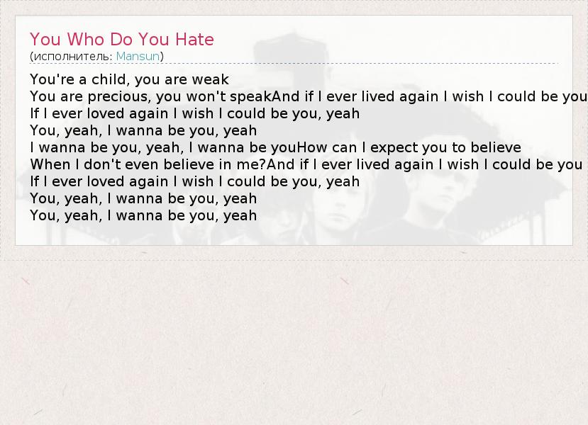 ГлавнаяИсполнителиMansunYou Who Do You Hate