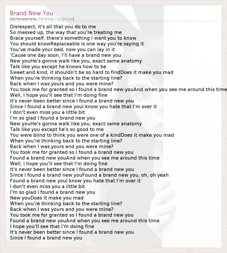 You took me for granted so I found a brand new youAnd when you see me around this time
