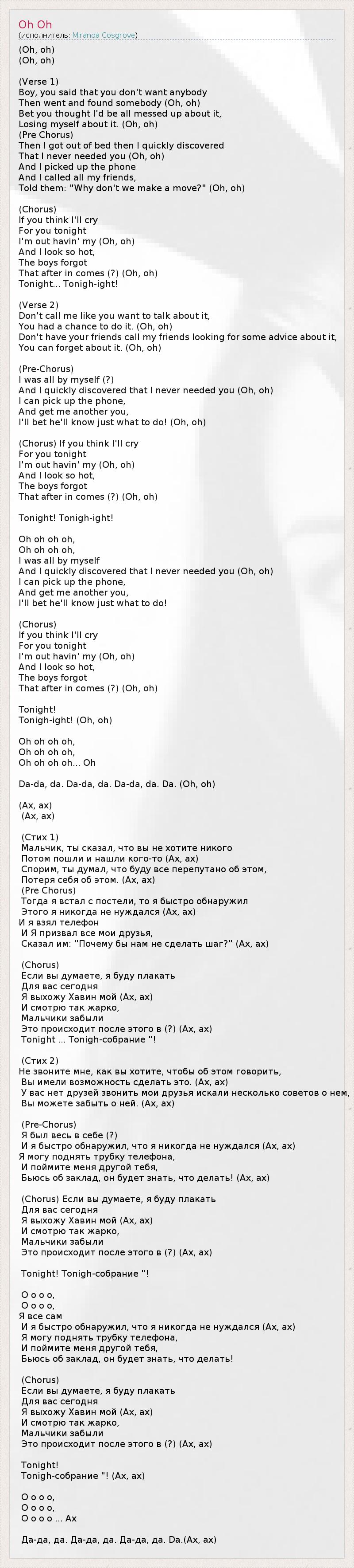 А как ты думаешь, о чем песня "Oh Oh" ?