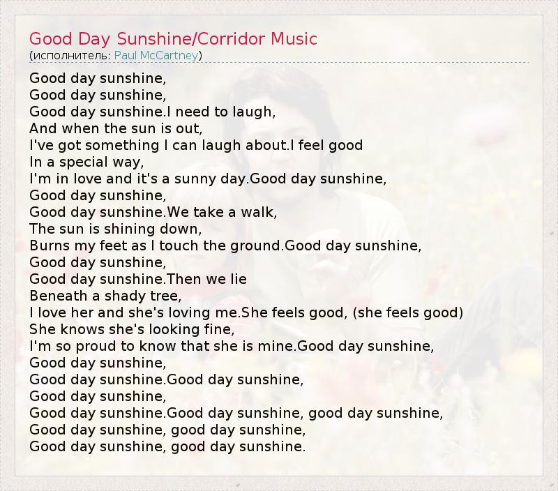 А как ты думаешь, о чем песня "Good Day Sunshine/Corridor Music" ?