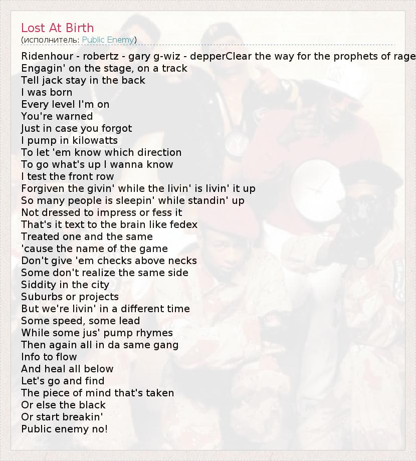 А как ты думаешь, о чем песня "Lost At Birth" ?