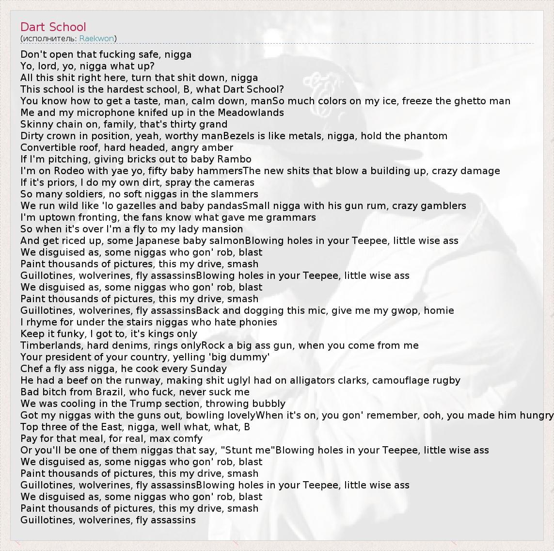 Это интересно:Raekwon, The Chef, Chef Raekwon, Rae, Shallah Raekwon, Lou(Lex), Louis RichТакие друзья, как Raekwon и Ghostface связаны большим, чем просто кровными узами. Они были одноклассники в школе Park Hill, и они видели все эти уличные войны, все это происходило на их глазах. "Мы часто наблюдали за большими нигерами, и подражали им, мы тоже воевали. Но тем не менее мы просто наблюдали за этими нигерами, потому что в те времена мы были лишь... продолжение