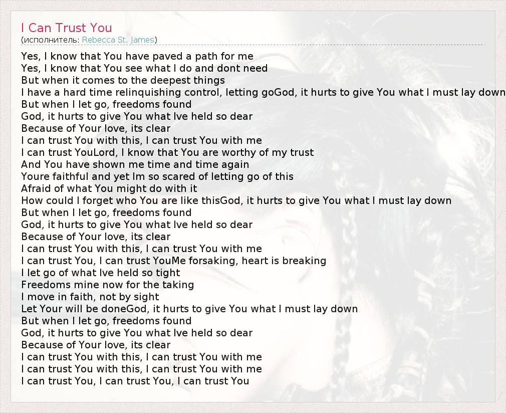 А как ты думаешь, о чем песня "I Can Trust You" ?