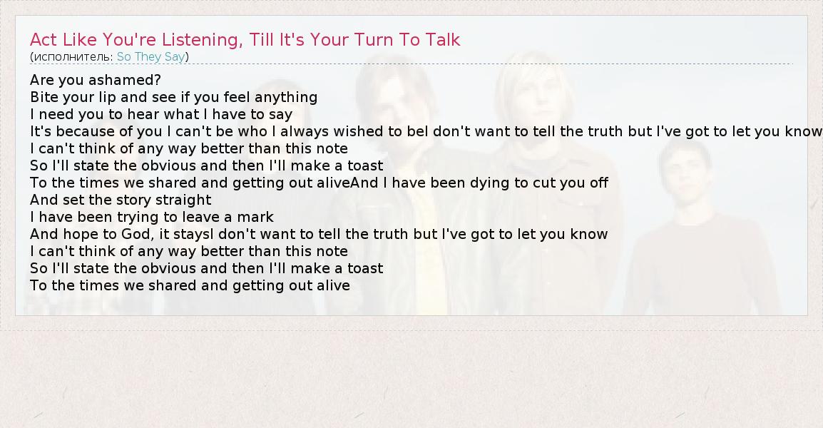 ГлавнаяИсполнителиSo They SayAct Like You're Listening, Till It's Your Turn To Talk