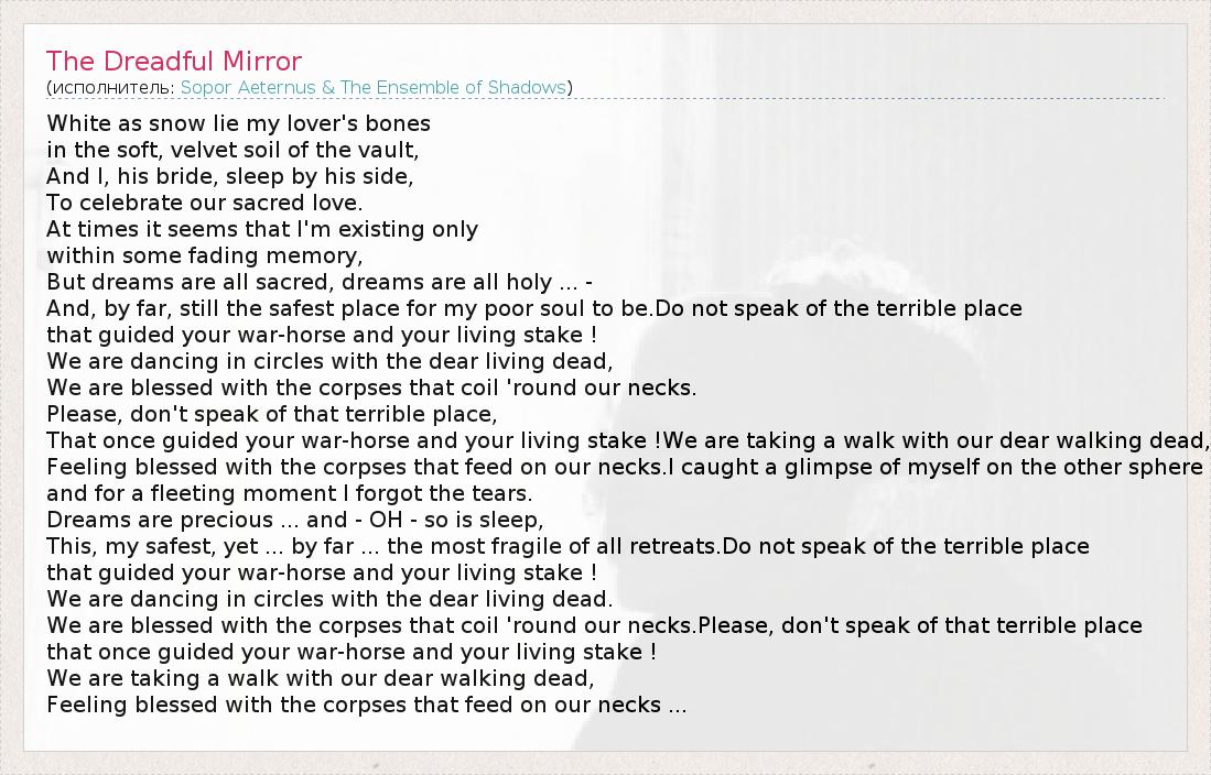 А как ты думаешь, о чем песня "The Dreadful Mirror" ?
