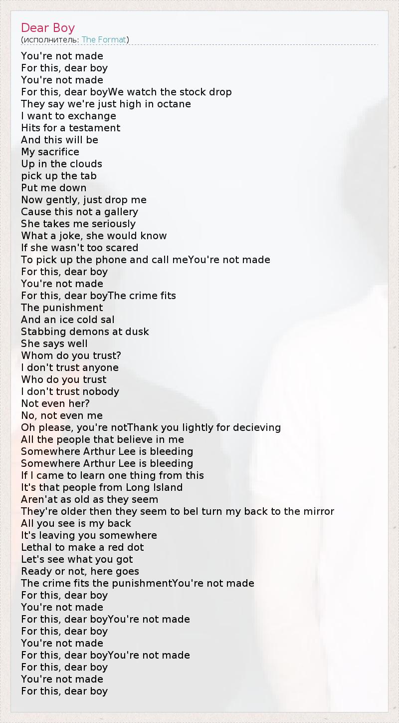 А как ты думаешь, о чем песня "Dear Boy" ?