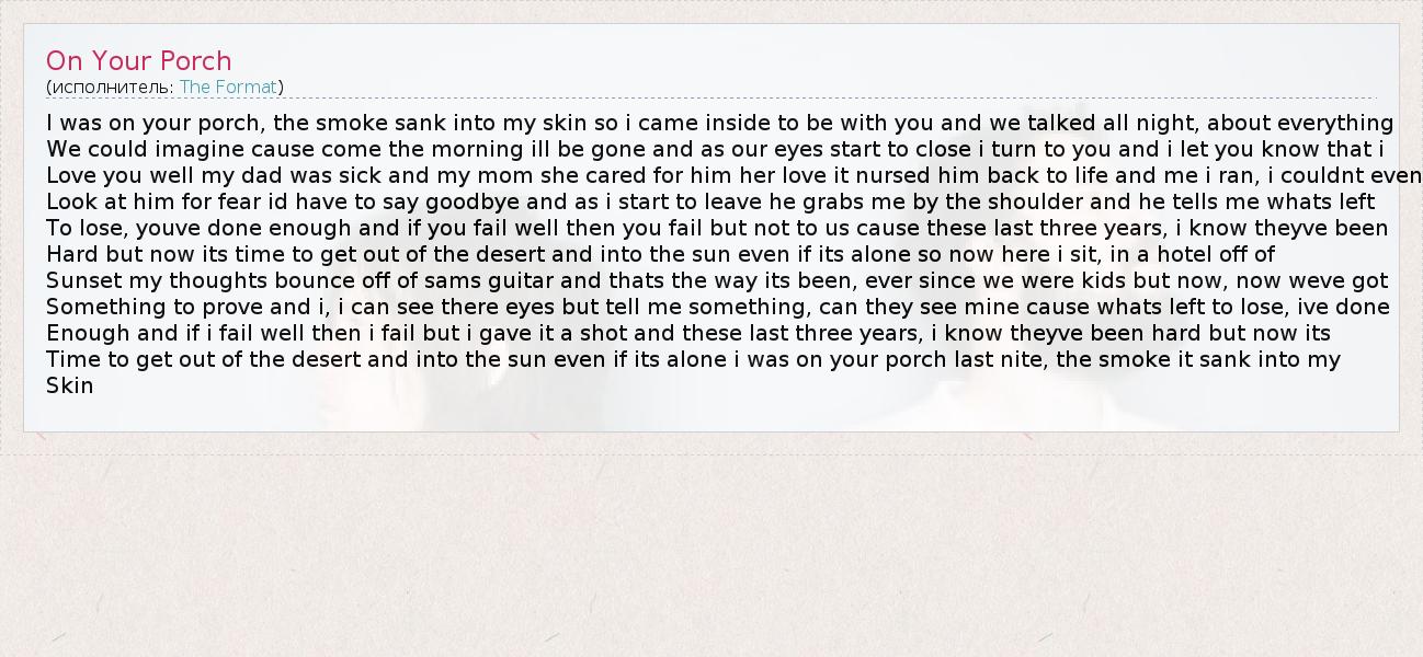 А как ты думаешь, о чем песня "On Your Porch" ?