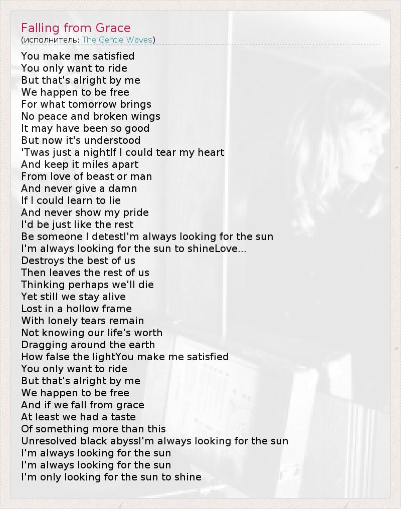 А как ты думаешь, о чем песня "Falling from Grace" ?