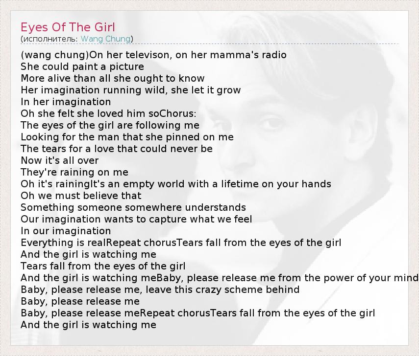 А как ты думаешь, о чем песня "Eyes Of The Girl" ?