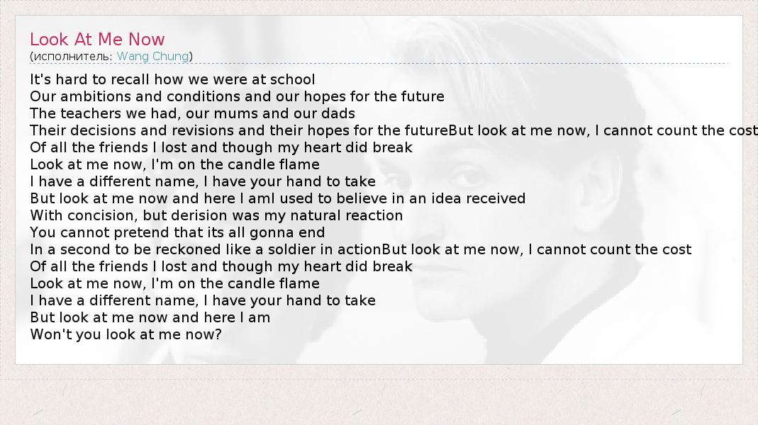 А как ты думаешь, о чем песня "Look At Me Now" ?