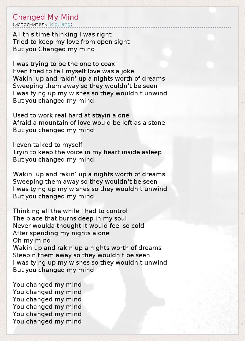А как ты думаешь, о чем песня "Changed My Mind" ?