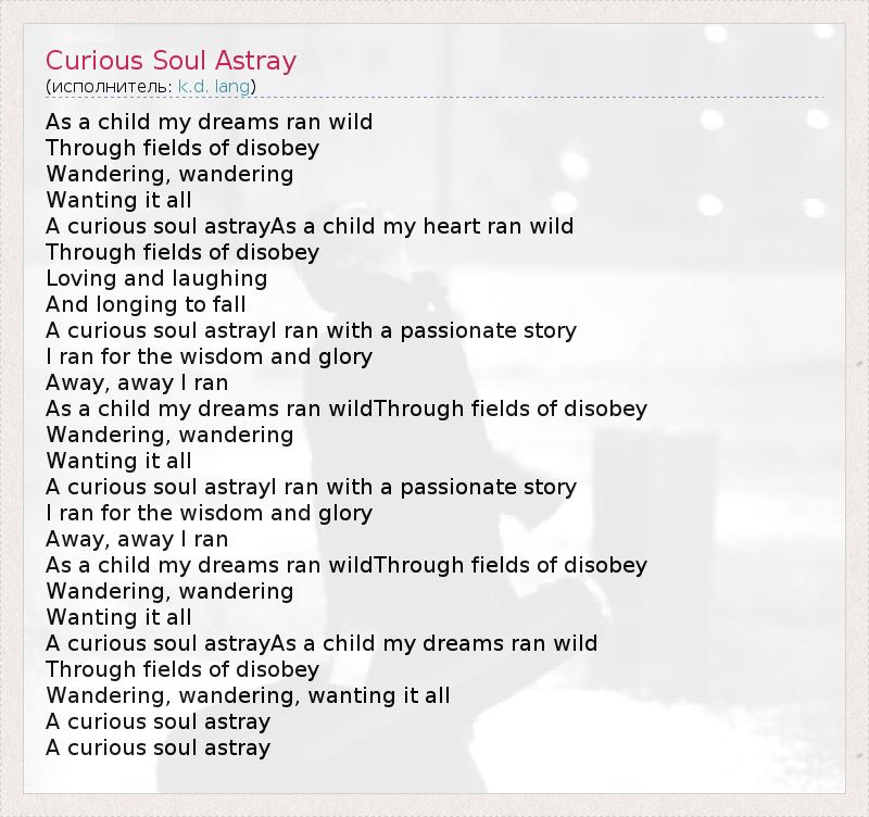 А как ты думаешь, о чем песня "Curious Soul Astray" ?