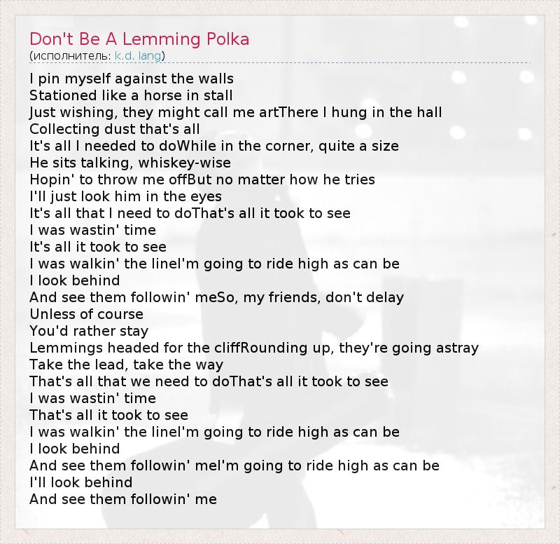 А как ты думаешь, о чем песня "Don't Be A Lemming Polka" ?