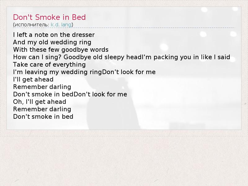 А как ты думаешь, о чем песня "Don't Smoke in Bed" ?