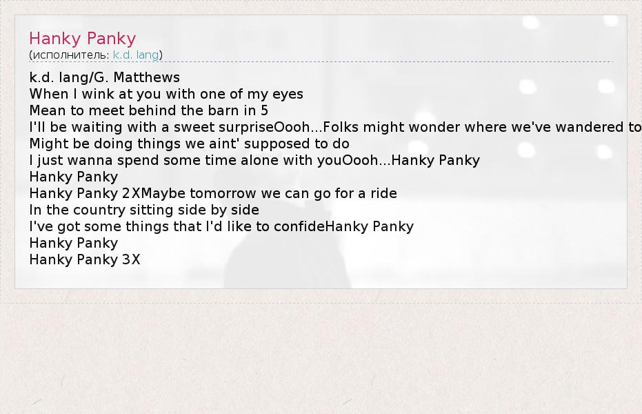 А как ты думаешь, о чем песня "Hanky Panky" ?