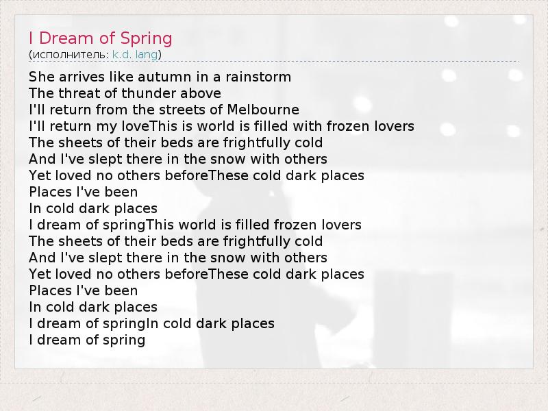 А как ты думаешь, о чем песня "I Dream of Spring" ?