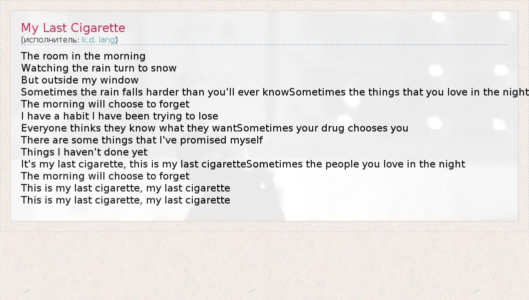 А как ты думаешь, о чем песня "My Last Cigarette" ?