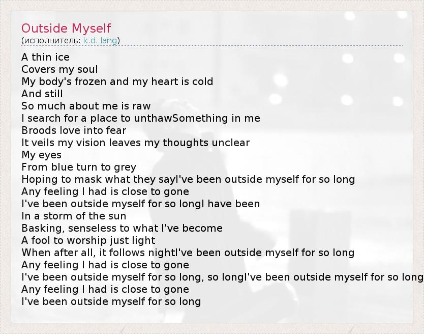 А как ты думаешь, о чем песня "Outside Myself" ?