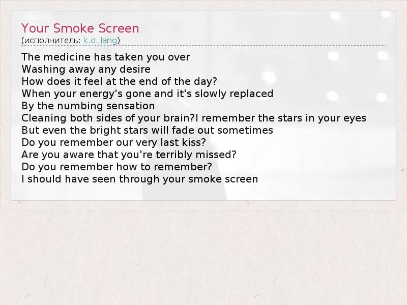 А как ты думаешь, о чем песня "Your Smoke Screen" ?