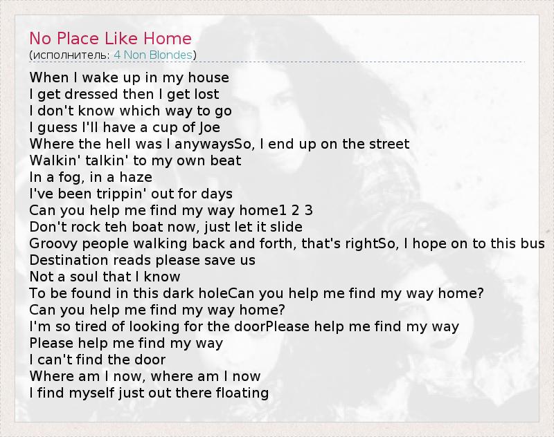 А как ты думаешь, о чем песня "No Place Like Home" ?