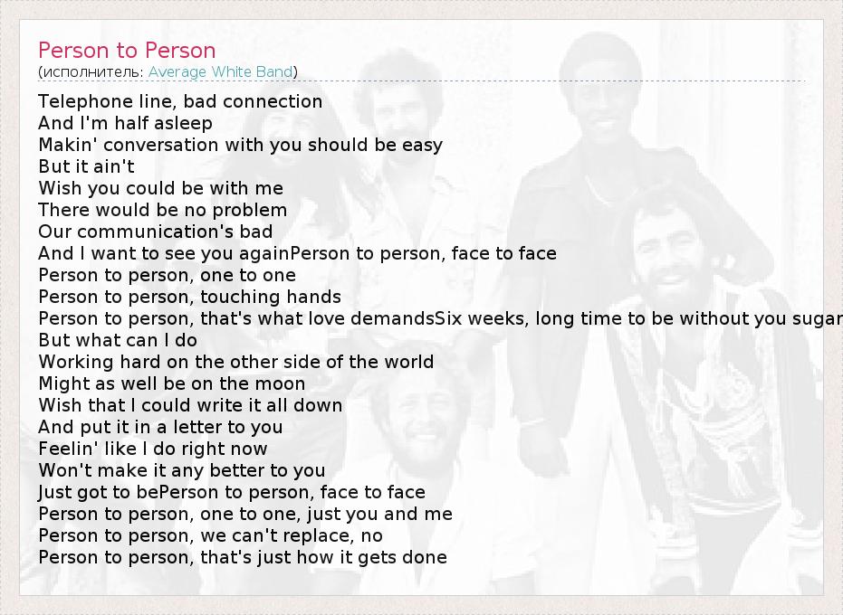 Person to person, that's what love demandsSix weeks, long time to be without you sugar