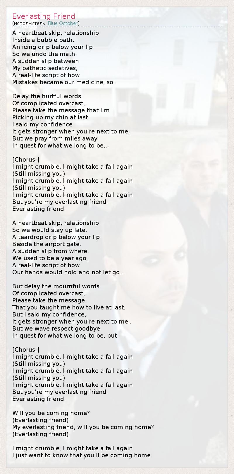 А как ты думаешь, о чем песня "Everlasting Friend" ?