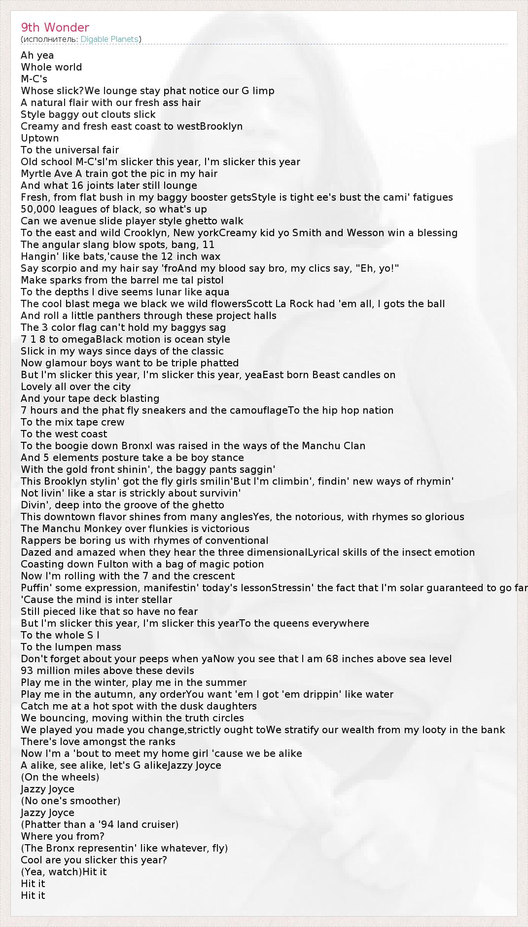 А как ты думаешь, о чем песня "9th Wonder" ?