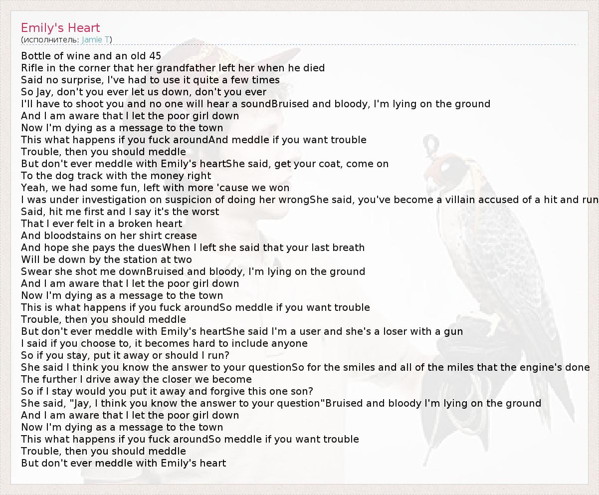 А как ты думаешь, о чем песня "Emily's Heart" ?