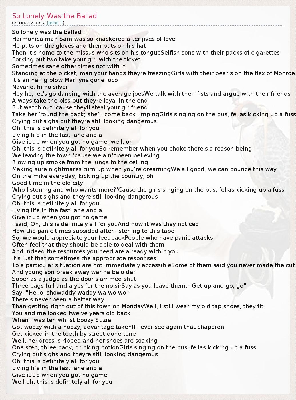 ГлавнаяИсполнителиJamie TSo Lonely Was the Ballad