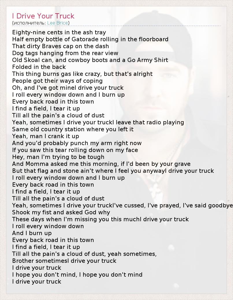 А как ты думаешь, о чем песня "I Drive Your Truck" ?