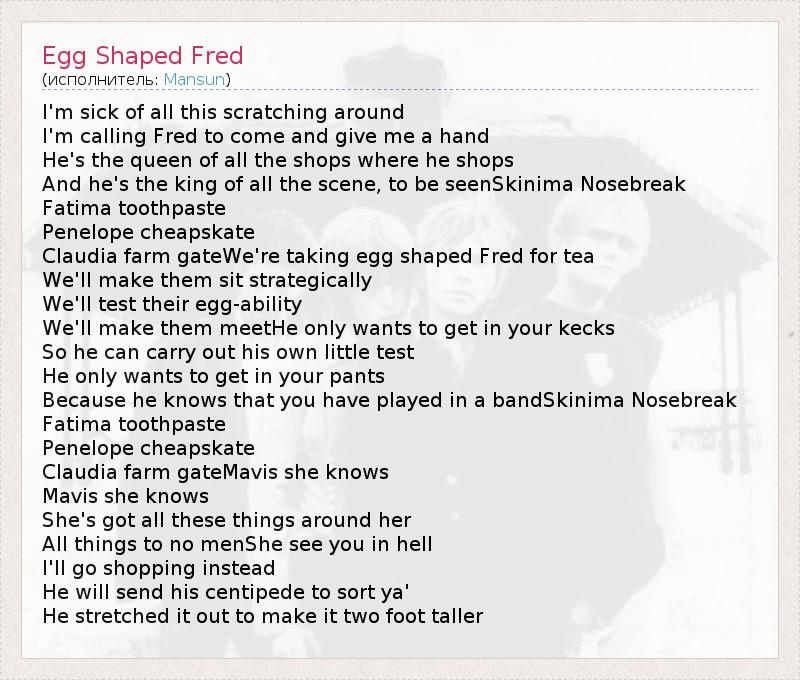 А как ты думаешь, о чем песня "Egg Shaped Fred" ?