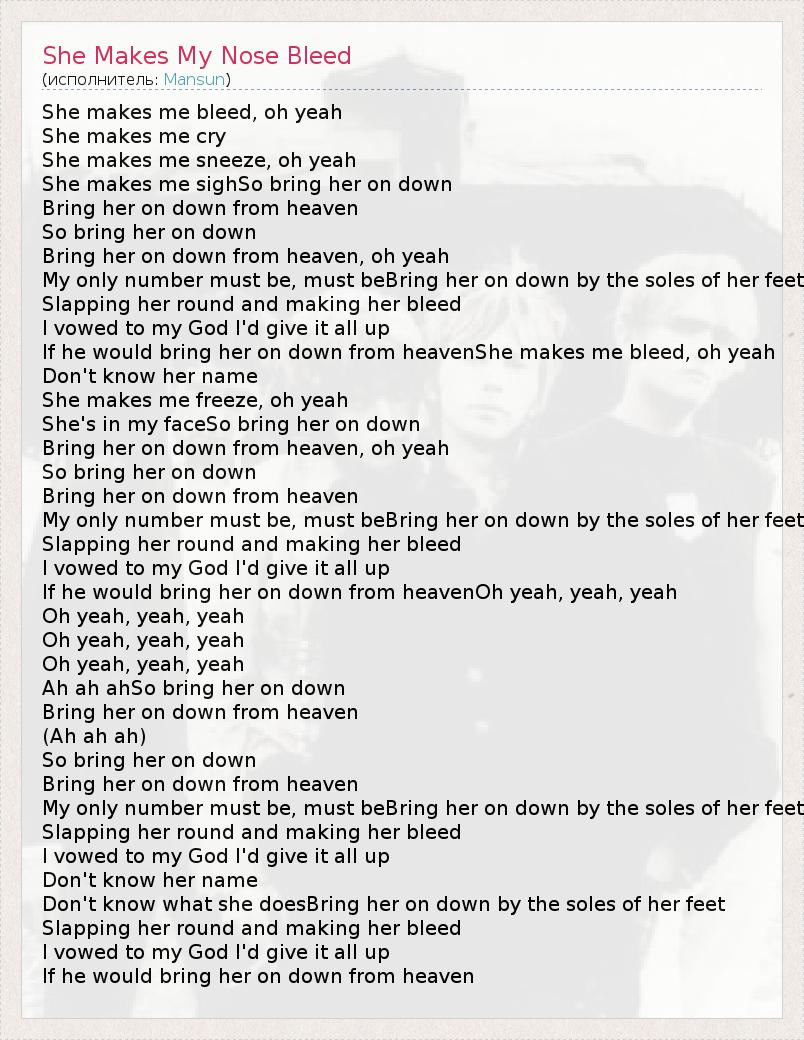 А как ты думаешь, о чем песня "She Makes My Nose Bleed" ?