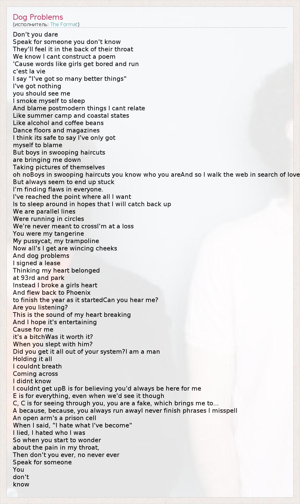 А как ты думаешь, о чем песня "Dog Problems" ?