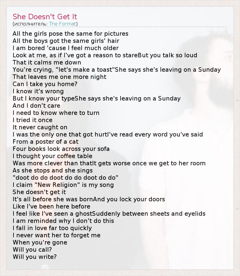 А как ты думаешь, о чем песня "She Doesn't Get It" ?
