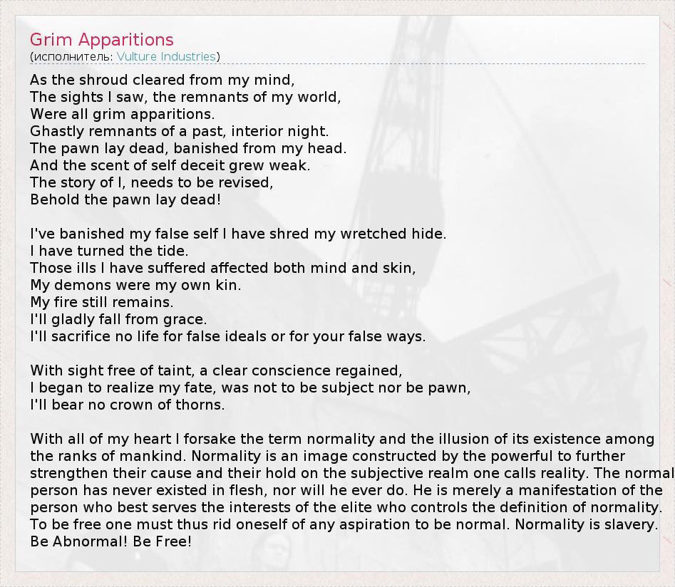 А как ты думаешь, о чем песня "Grim Apparitions" ?